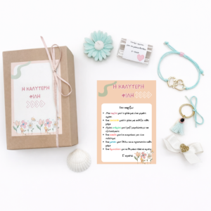 Περιλαμβάνει μικρά αντικείμενα με ιδιαίτερο νόημα, που εκφράζουν αγάπη, ευγνωμοσύνη και όλα εκείνα τα «ευχαριστώ» που δεν λέγονται πάντα με λόγια. Συνοδεύεται από κάρτα με συγκινητικό μήνυμα, αφιερωμένο στη μαμά που στηρίζει, καθοδηγεί και αγαπά χωρίς όρια.